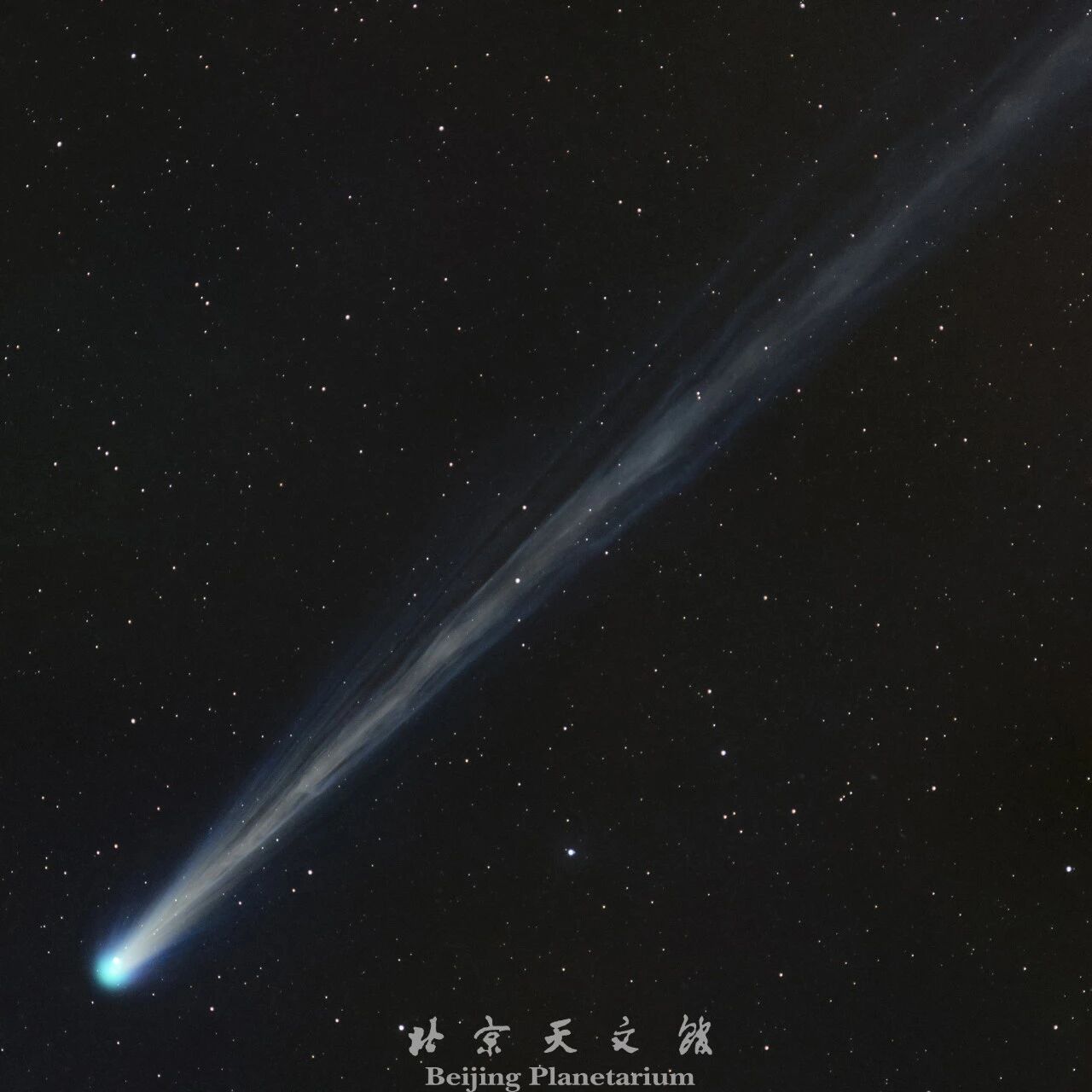 杨雳鹏解释说,很可能是因为R3彗星已经非常接近近日点,彗星物质剧烈挥发,“同时我们与彗星、太阳之间可能构成了比较特殊的几何关系,当阳光穿过彗尾尘埃时,尘埃颗粒会将光线朝我们的方向‘聚焦’,使彗尾亮度显著增强。所以在地面上看,R3彗星有着非常长的彗尾。”